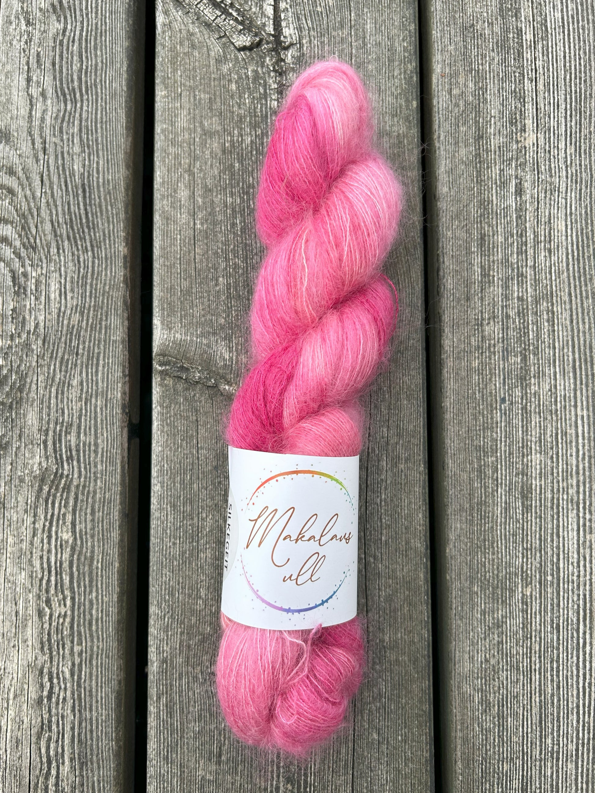 Silkegeit er eit børsta eintrådsgarn. Det passar ypperleg som følgetråd, men det kan også fint strikkast aleine.